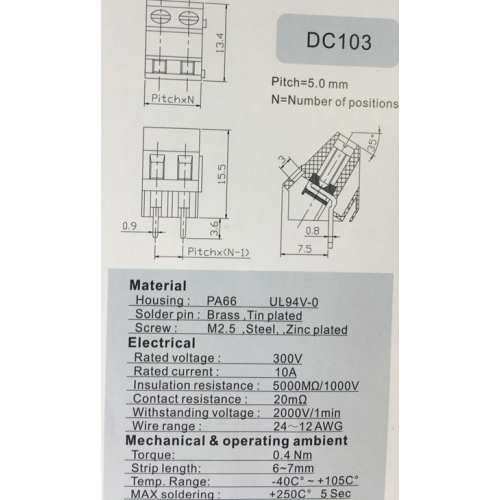 Pitch:5.0 mm